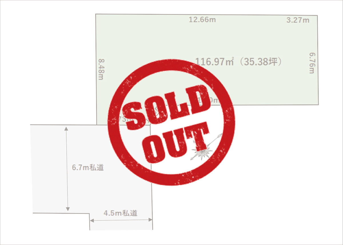 | 接道 | 南東側4.5m私道、南西側6.7m私道 |