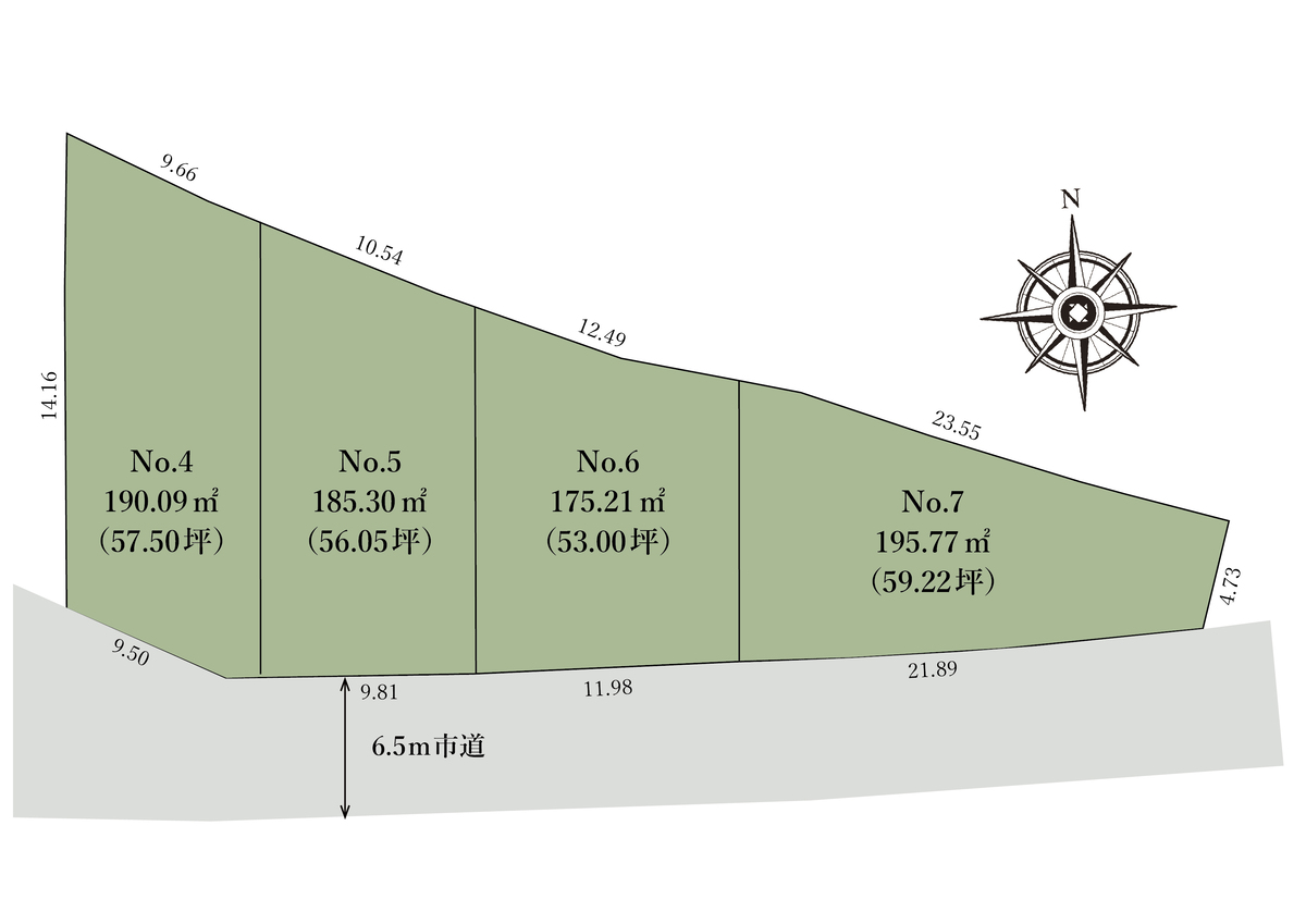| 接道 | 南側6.5m市道 |